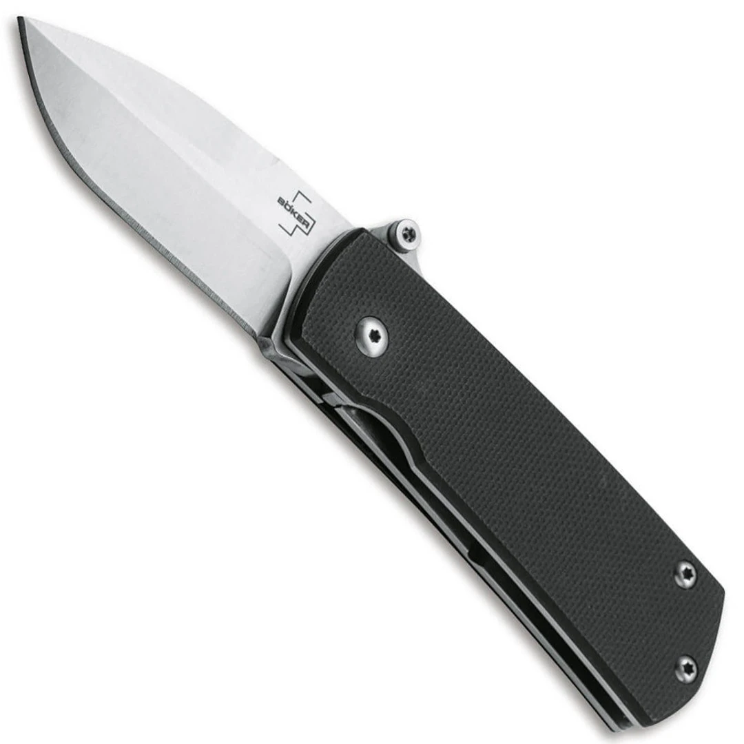 The Boker Plus Shamsher , designed by Darriel Caston and Stan Mojzis, boasts a minimalistic design. This slim knife features a blade made of D2 tool steel which is opened by spring force when the trigger is pressed. The blade is locked securely by a linerlock. The blade is paired with black G10 handle scales with texture for a solid grip no matter the condition.