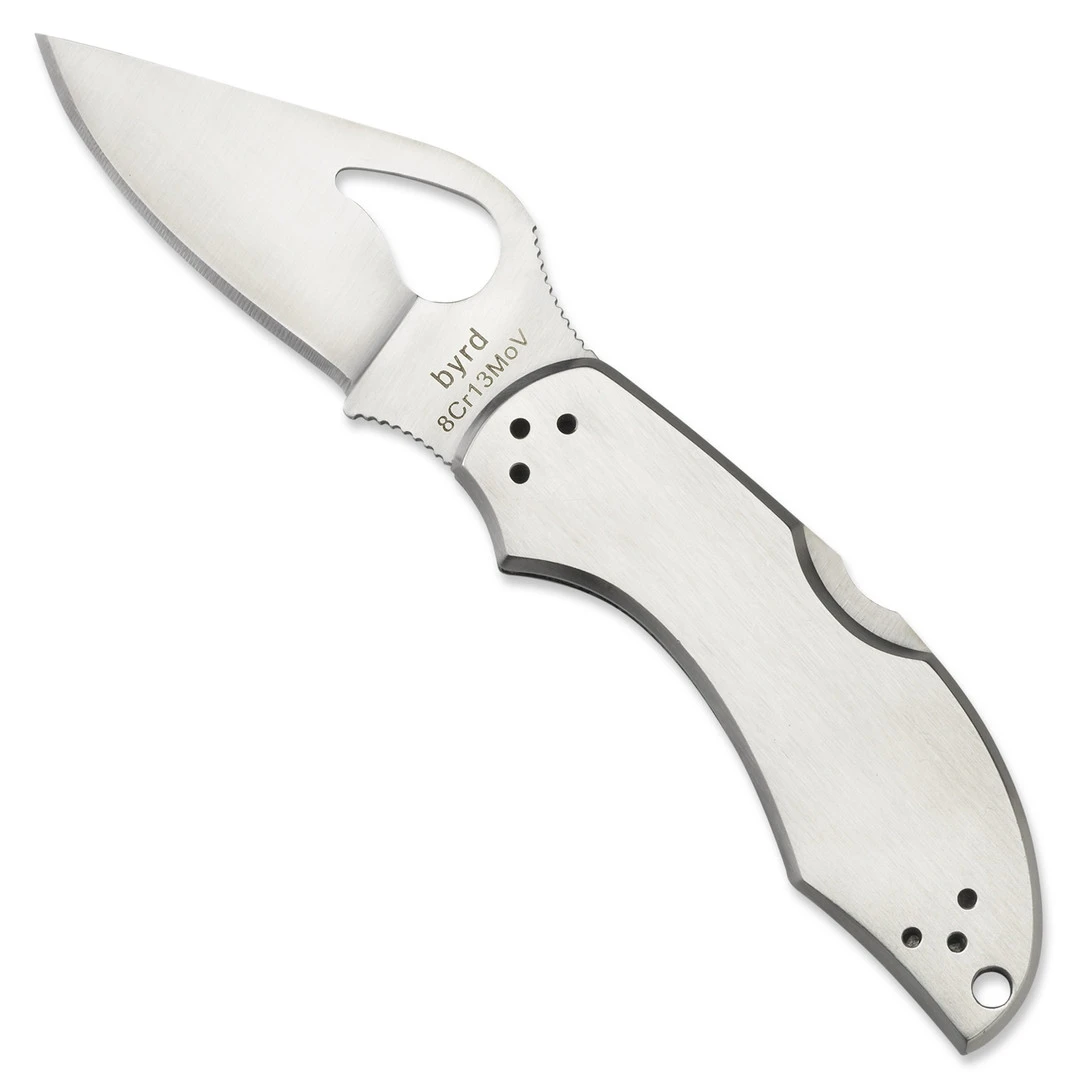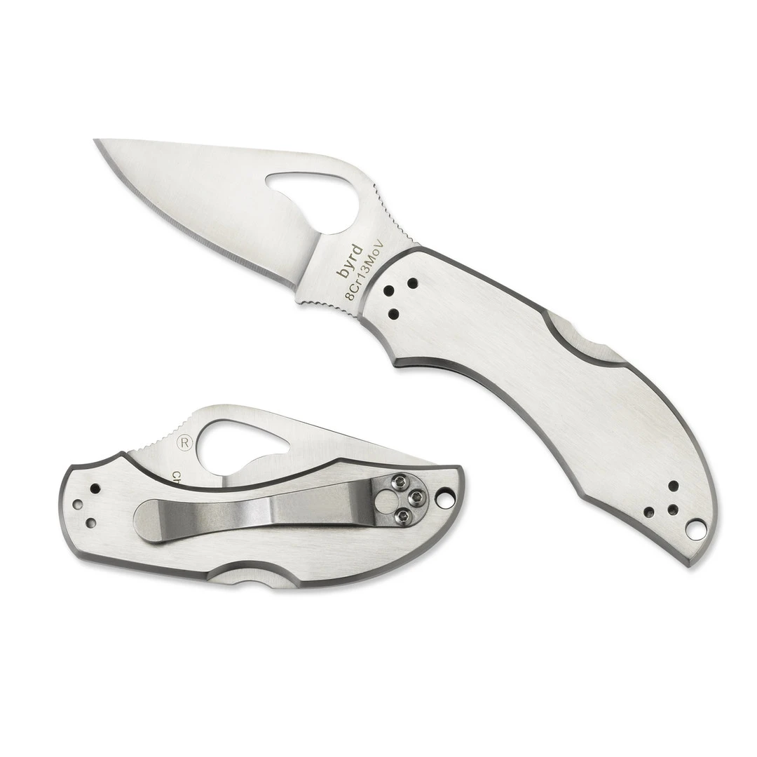 The Robin 2 is built much like the Meadowlark 2 but in a slightly smaller package. This model features a flat ground stainless steel blade and that offers great cutting performance while still providing ease of maintenance and strategic placed jimping for secure grip. The Robin 2 utilizes a lock back mechanism–a locking system positioned on the back of the handle that uses a rocker arm that pivots in the center while the blade is manually deployed with the help of Byrd’s signature comet-shaped hole. This knife is part of Spyderco’s Byrd family which offers all of the same functionality and convenience of Spyderco’s production models but at a lower price point for the budget-conscious or those especially new to knives. This heavier model features black G-10 handle scales, a drop point style blade in a satin finish and the 4-way positional pocket clip allows for a tip up or tip down carry option on either side of the handle.