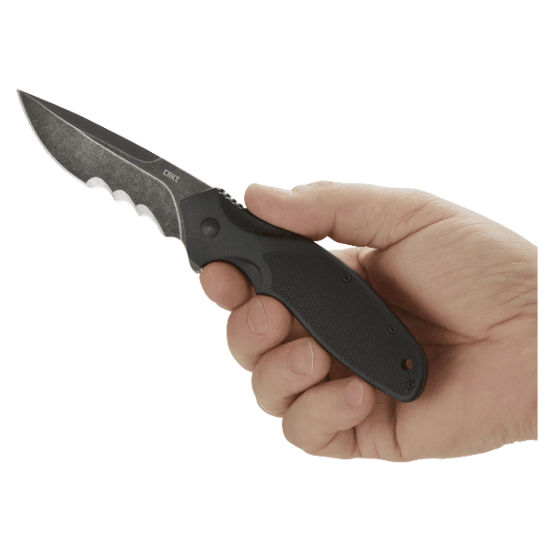 The CRKT Shenanigan Black Veff Serrations Spring Assist Knife is a powerfully durable knife designed by Ken Onion. The black, partially serrated, stonewashed blade, made of 1.4116 steel, breezes through tough materials like rope and cord. This knife features the innovative IKBS ball bearing system for a smooth, quick open every time. This striking blade is a powerful addition to your everyday carry.
