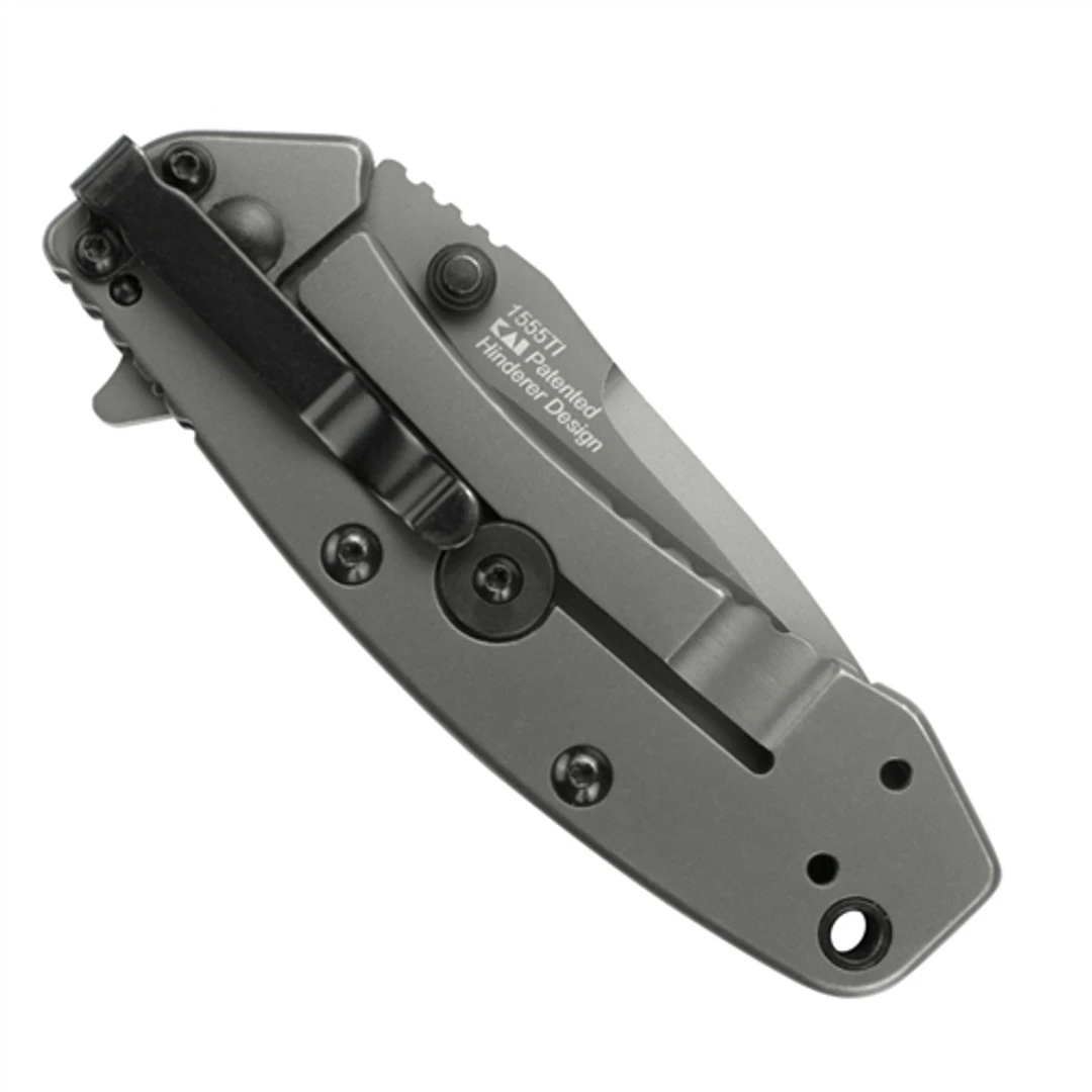The Kershaw Cryo II is a classic Rick Hinderer designed spring assisted knife. Built in pure steel with a matte grey titanium carbo-nitride coating on the blade and the handle, the Cryo II uses the SpeedSafe assisted opening system. You can open the blade with the built in flipper or the thumbstud and the blade snaps out fast and locks up with a sturdy framelock. The framelock has a lockbar stabilization ensures a solid lockup. This amazingly affordable Kershaw is destined to be the Hinderer for the rest of us.