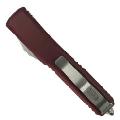 Microtech Merlot Ultratech OTF Auto Knife, Full Serrated Satin Dagger Blade