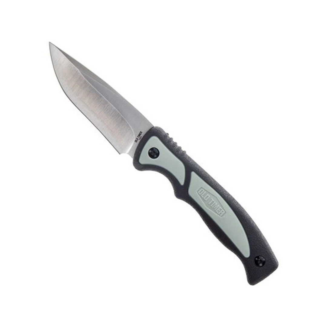 Schrade Old Timer Trail Boss Fixed Blade Knife is a tough knife ready for action. The knife boasts a strong 8Cr13MoV stainless steel blade with a sleek satin finish. This steel provides good edge retention, corrosion and wear resistance. The blade is paired with a black and gray TPE handle for comfortable grip. The handle is the perfect material for high-traction grip in adverse conditions. This functional knife is a great every day carry.