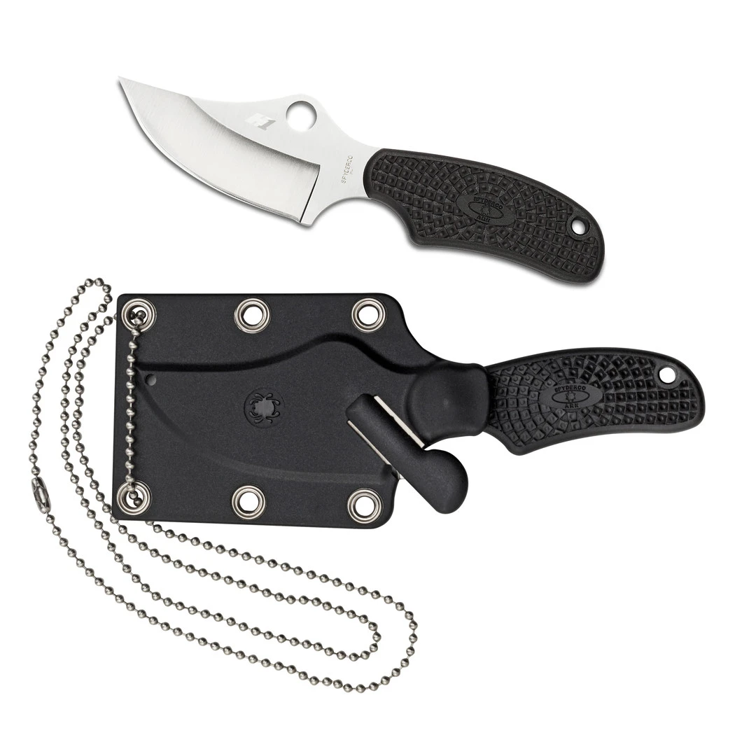 The Spyderco ARK or “Always Ready Knife” is a purpose designed knife from US Army Combat veteran John Shirley and his friend Sam Ownes. While in Afghanistan, Shirley learned that an alarming number of army personnel were falling victim to sexual assault, particularly in the showers. The ARK gives you the tool to defend yourself. The ARK is a lightweight self-defense tool that can be carried anywhere you go. The deeply curved clip point blade is ground from H-1 steel. Completely immune to rust, the H-1 blade delivers serious cutting power at the tip of its very sharp point. The FRN handle is molded right onto the tang and boasts Spyderco’s proved Bi-Directional Texturing pattern and an index finger groove to guarantee a secure grip even with wet hands. Comes with an injection molded neck sheath and breakaway ball chain. Even with the sheath, the knife weighs only 2.0 ounces–so you will hardly notice it until you need it.